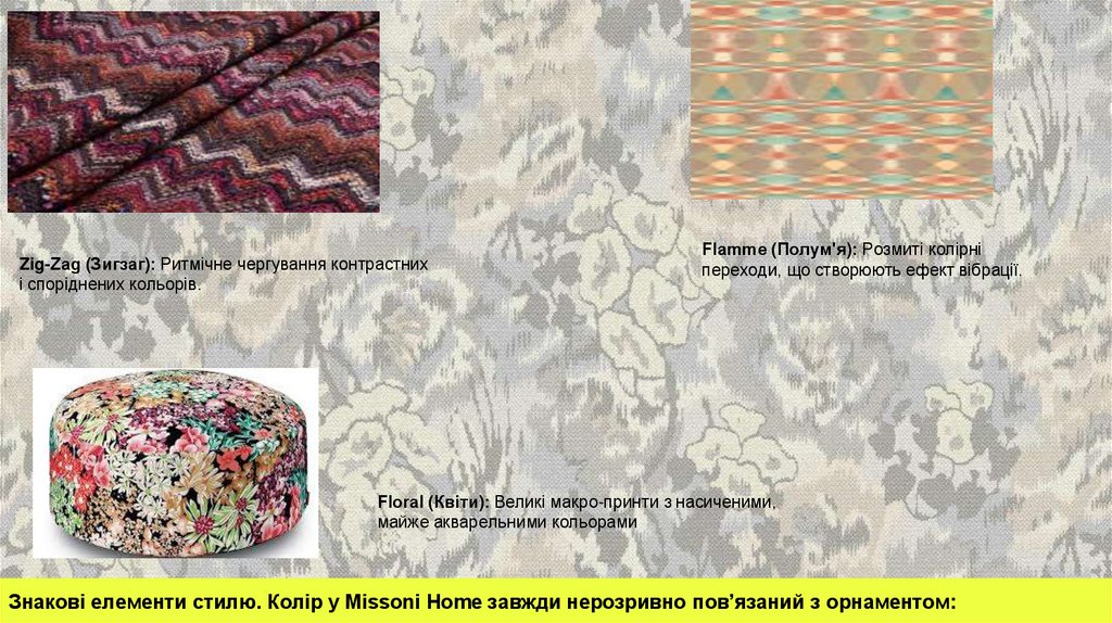 Знакові елементи стилю. Колір у Missoni Home завжди нерозривно пов’язаний з орнаментом: