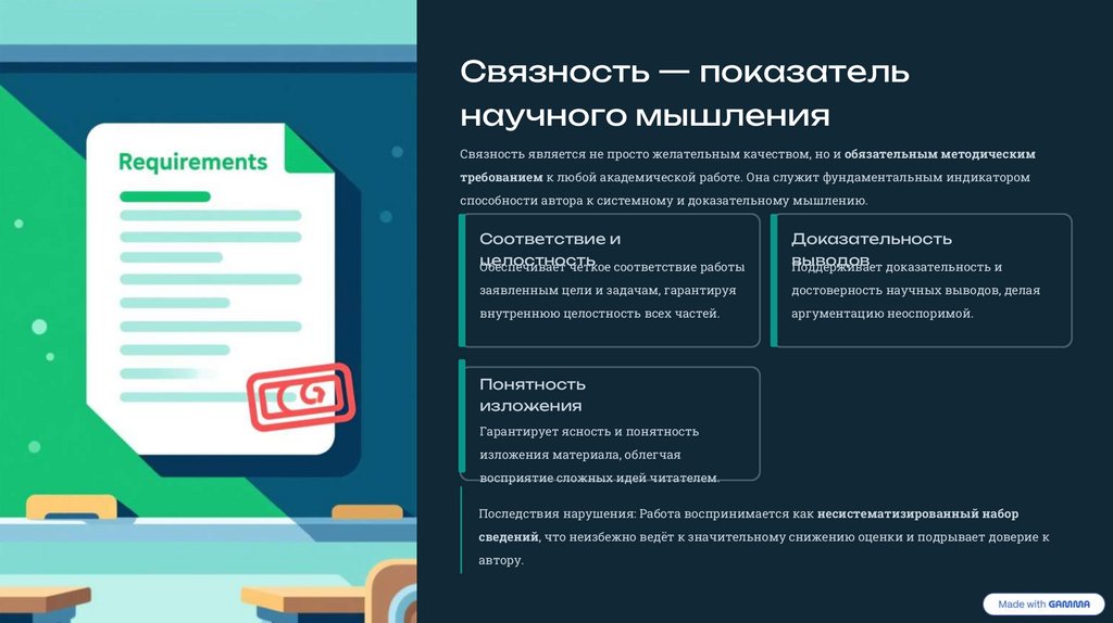 Последствия нарушения: Работа воспринимается как несистематизированный набор