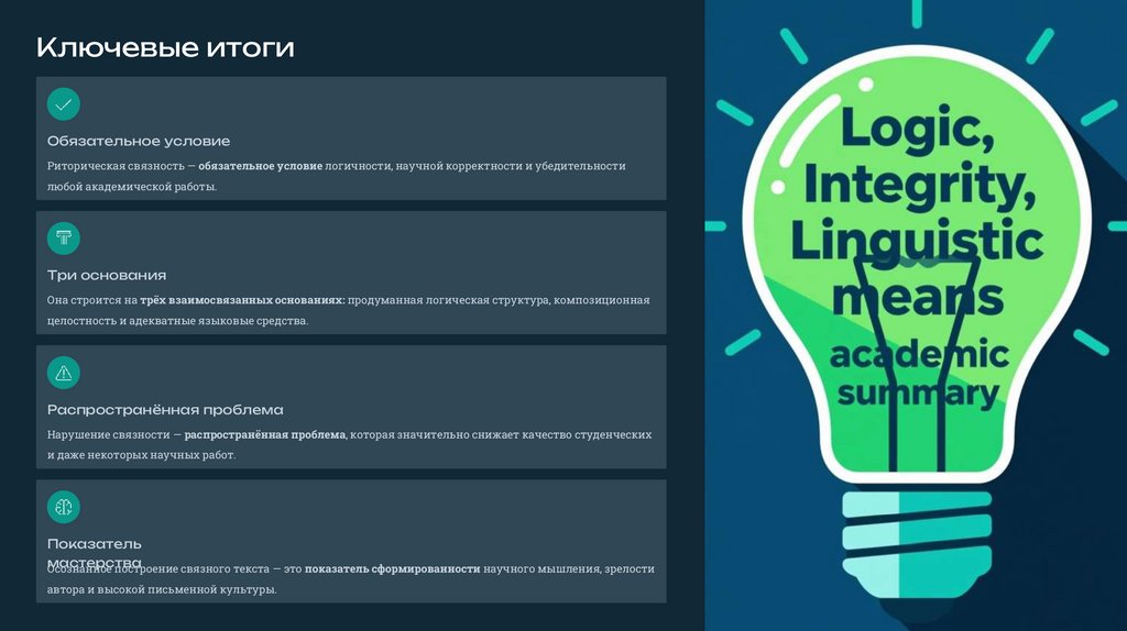 Риторическая связность — обязательное условие логичности, научной корректности и убедительности