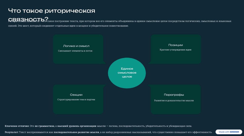 Несмотря на кажущуюся простоту, достижение риторической связности требует внимательности и практики.