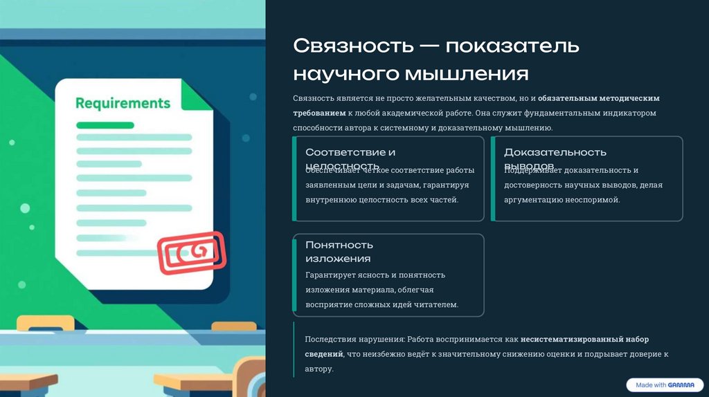 Последствия нарушения: Работа воспринимается как несистематизированный набор