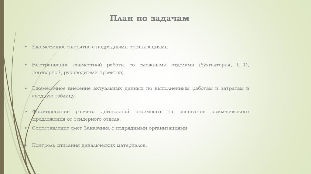 План по задачамЕжемесячное закрытие с подрядными организациями