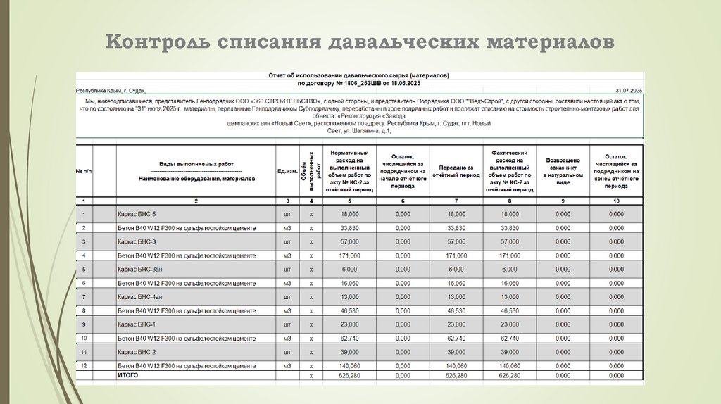 - Обеспечена детальная сверка объемов и актов выполненных работ согласно условиям