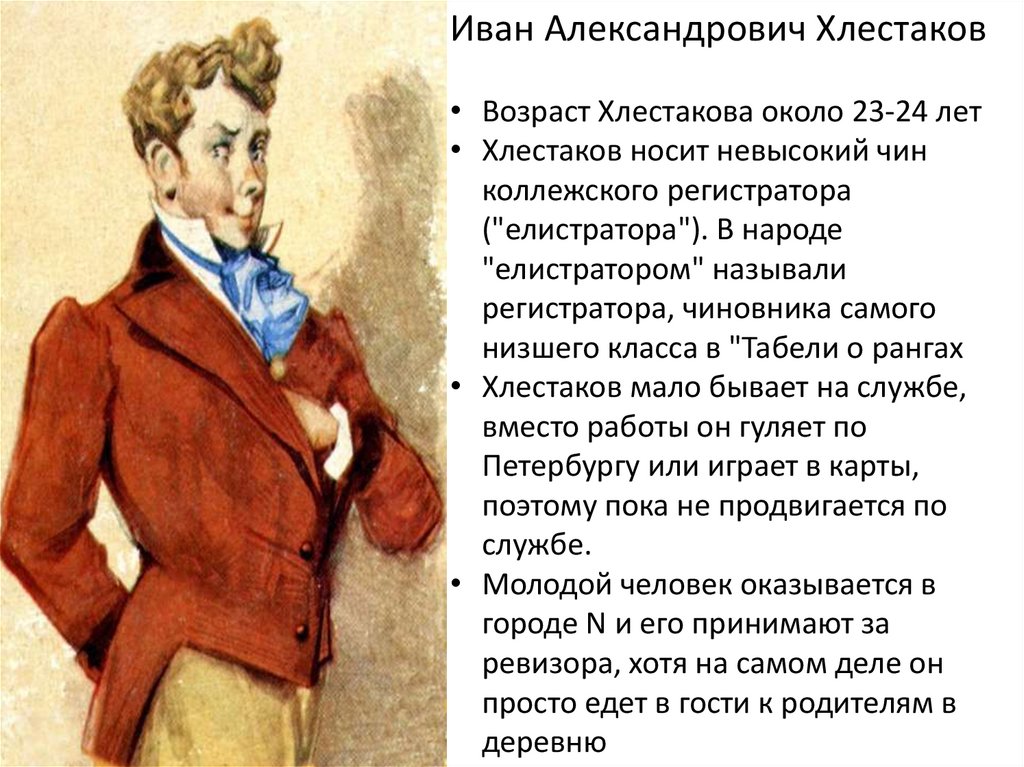 Иван Александрович Хлестаков• Возраст Хлестакова около 23-24 лет