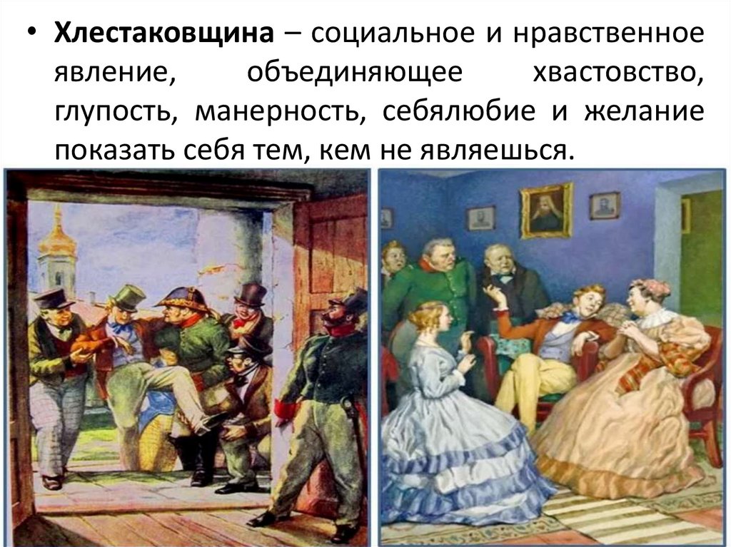 • Хлестаковщина – социальное и нравственноеявление,