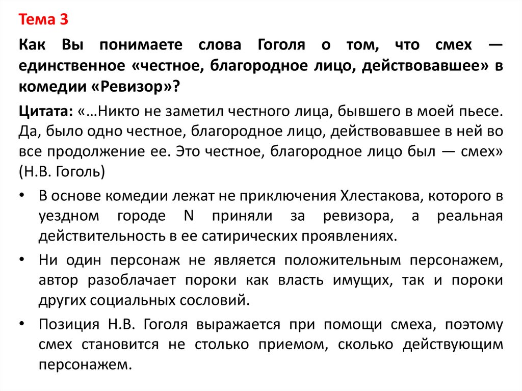 Тема 3Как Вы понимаете слова Гоголя о том, что смех —