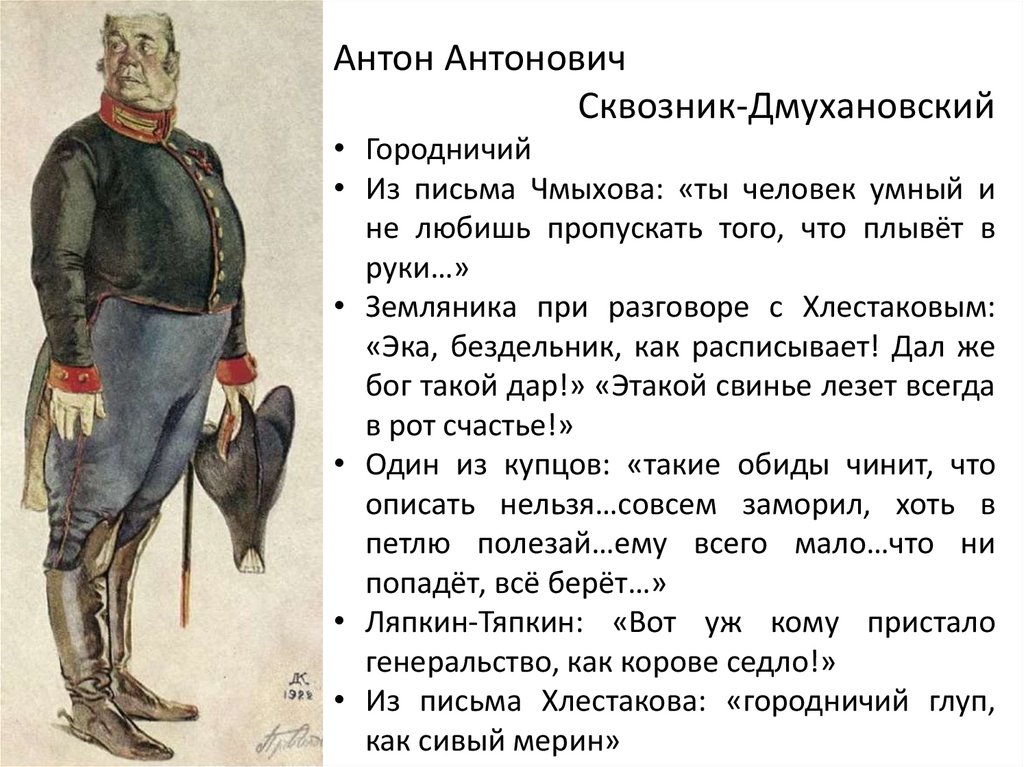 • Из письма Хлестакова: «городничий глуп,