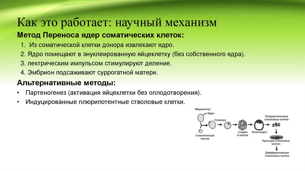 Как это работает: научный механизмМетод Переноса ядер соматических клеток: