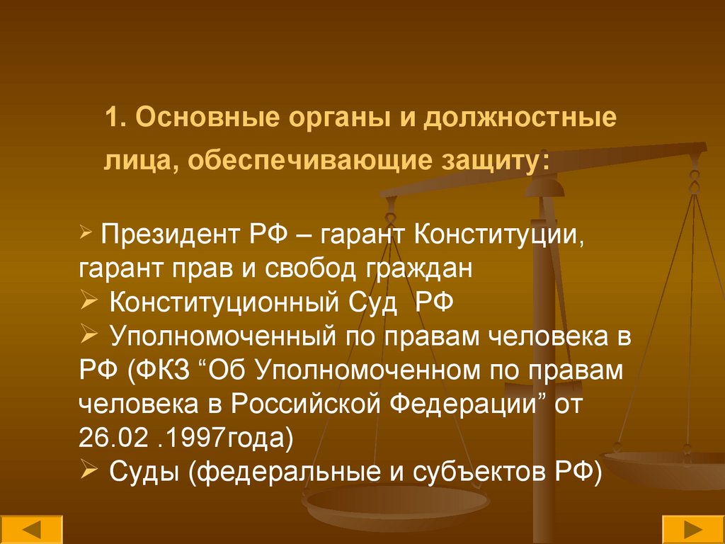 1. Основные органы и должностныелица, обеспечивающие защиту: