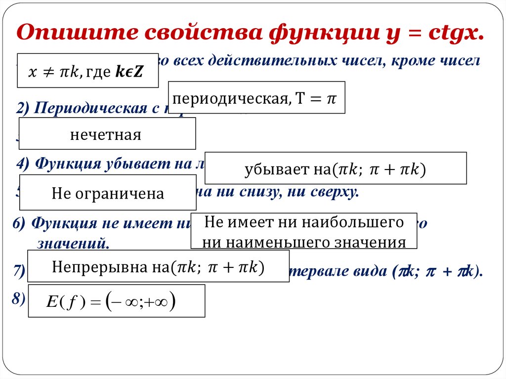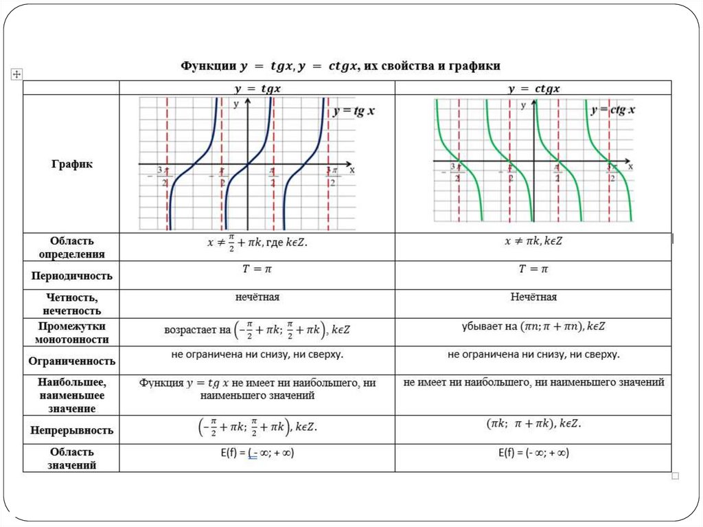 Функции y = tg x, y = ctg x,