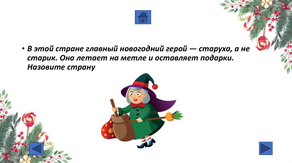 • В этой стране главный новогодний герой — старуха, а нестарик. Она летает на метле и оставляет подарки.