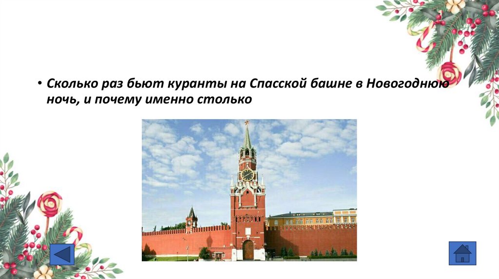 • Сколько раз бьют куранты на Спасской башне в Новогоднююночь, и почему именно столько