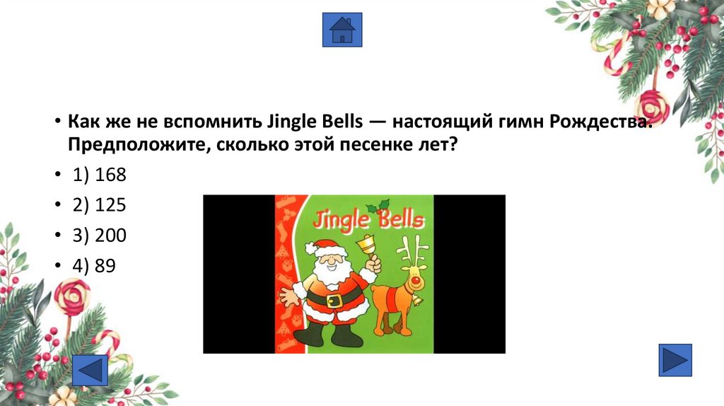 • Как же не вспомнить Jingle Bells — настоящий гимн Рождества.Предположите, сколько этой песенке лет?
