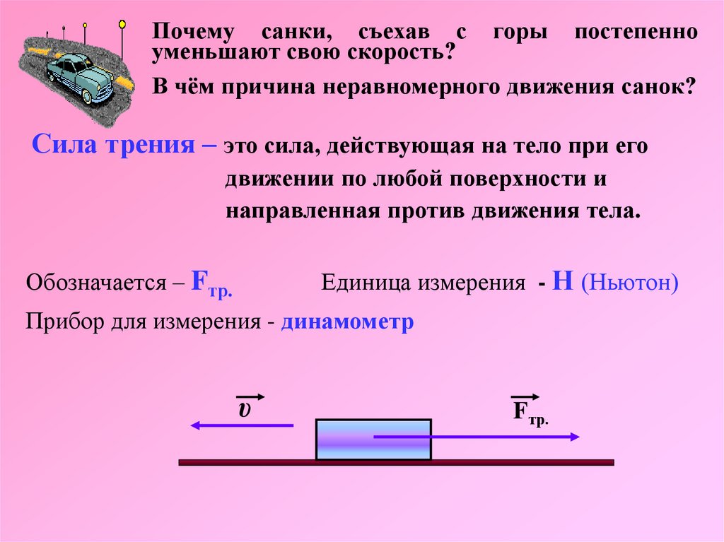 Почему санки, съехав с горы постепенноуменьшают свою скорость?