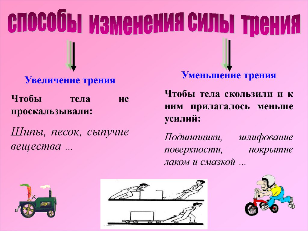 Уменьшение тренияУвеличение трения