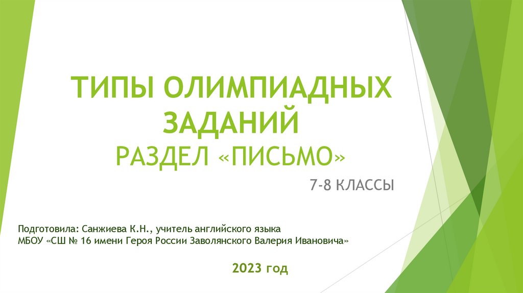 1. ТИПЫ ОЛИМПИАДНЫХ ЗАДАНИЙ РАЗДЕЛ «ПИСЬМО»