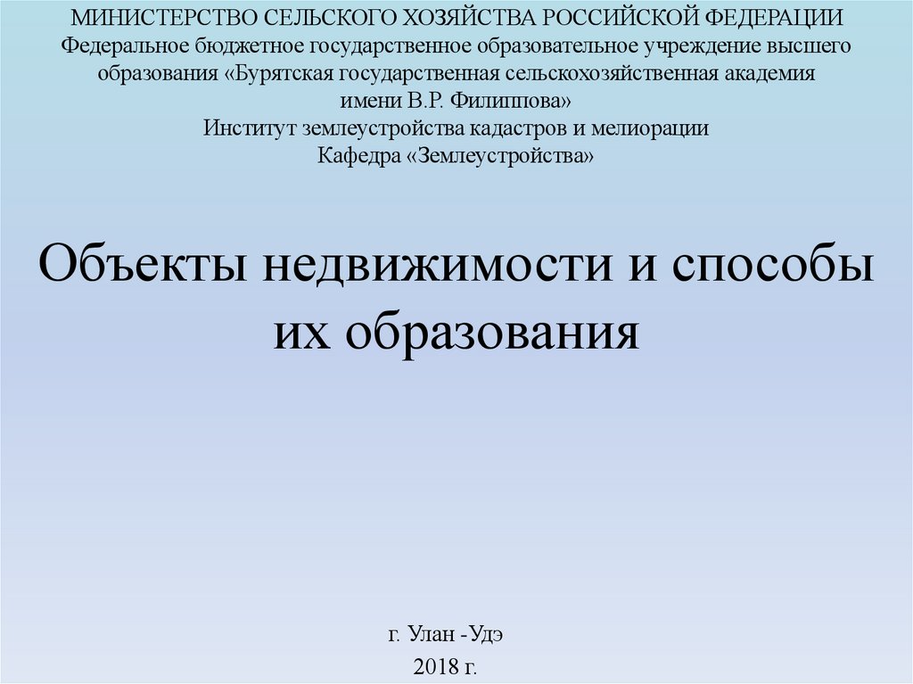 1. Объекты недвижимости и способы их образования