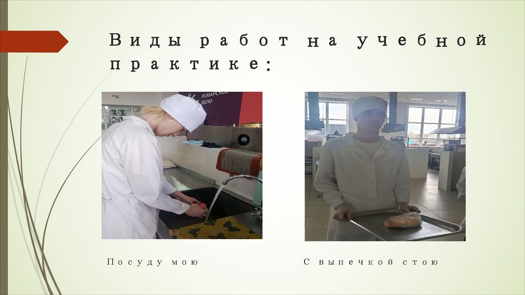 Виды работ на учебнойпрактике: