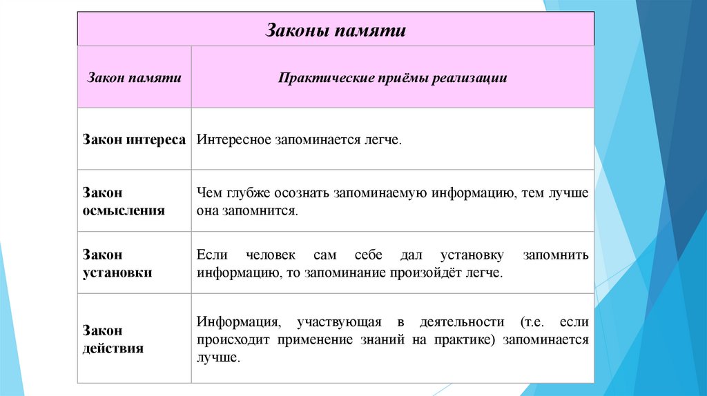 Скорость запоминания – индивидуальнаяхарактеристика памяти, которая находит свое