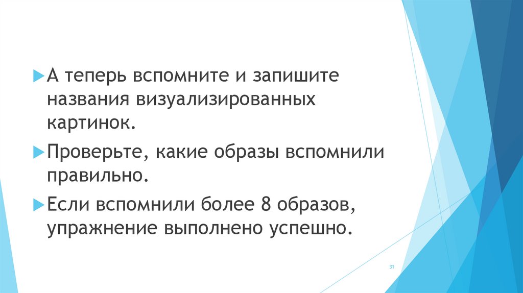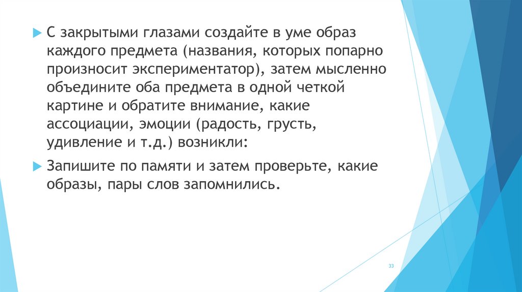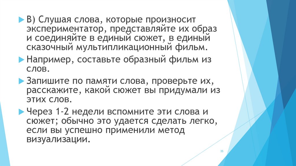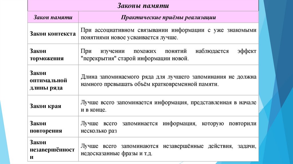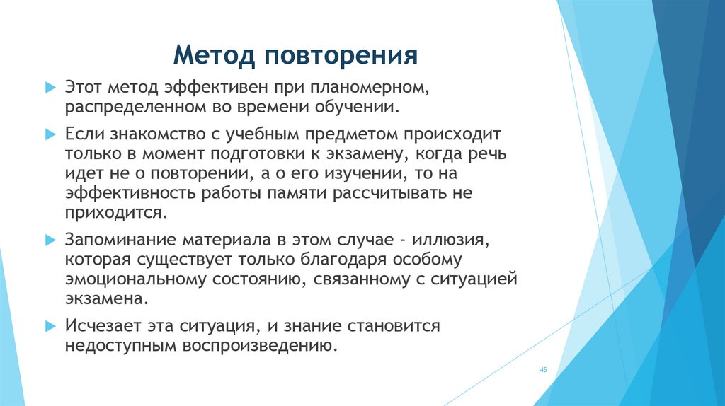 Наиболее адекватной методикой повторения можно считать следующую:1) необходимо повторить информацию сразу после ее восприятия, так как