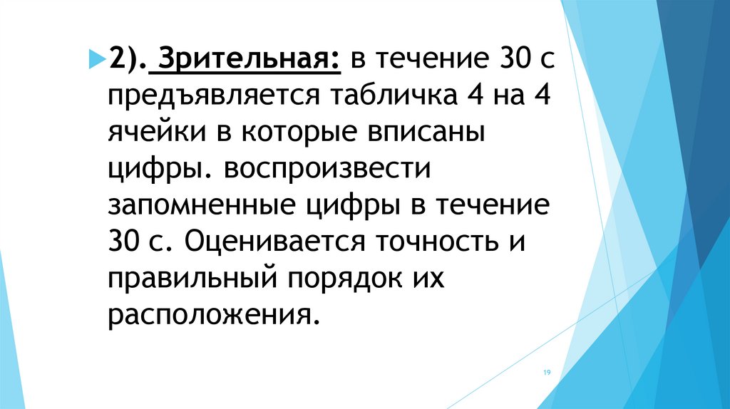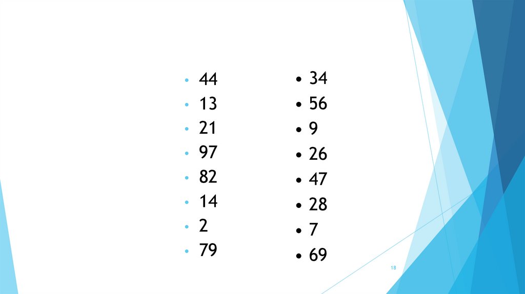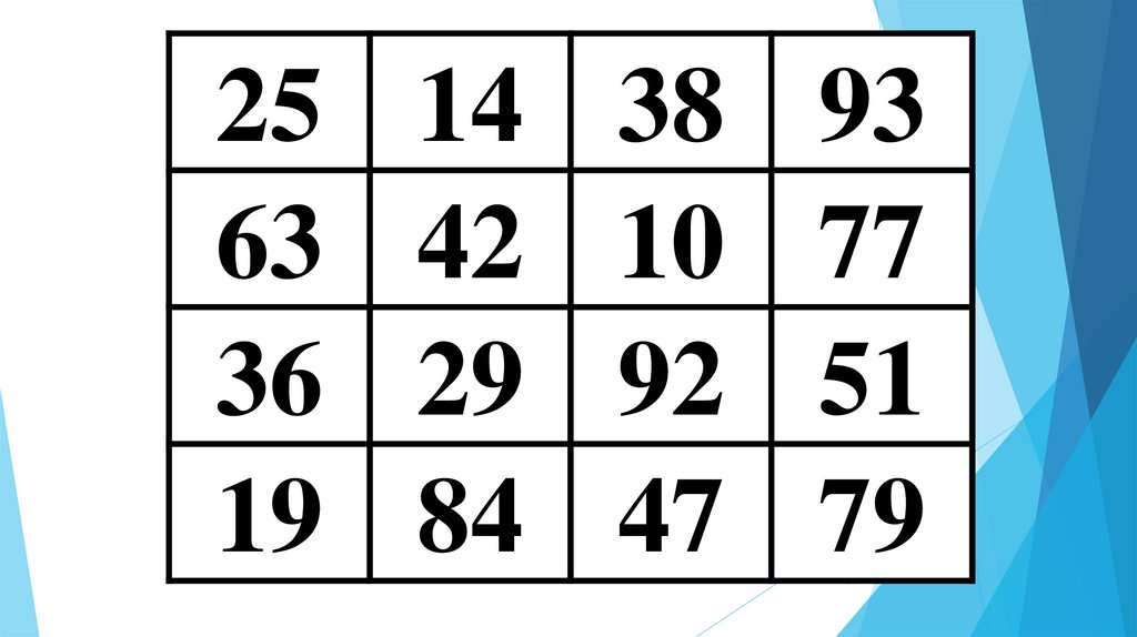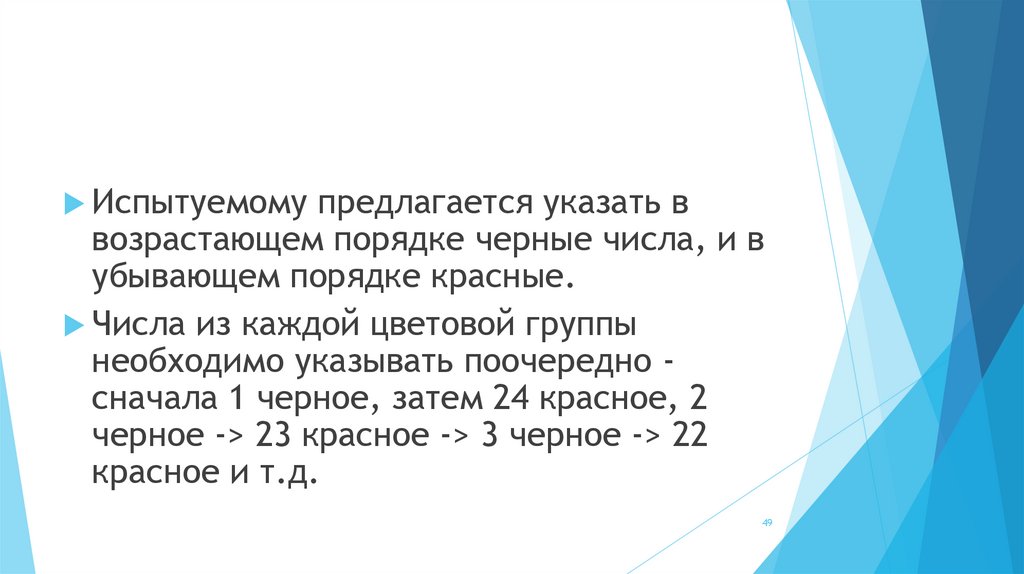 Испытуемому предлагается указать ввозрастающем порядке черные числа, и в