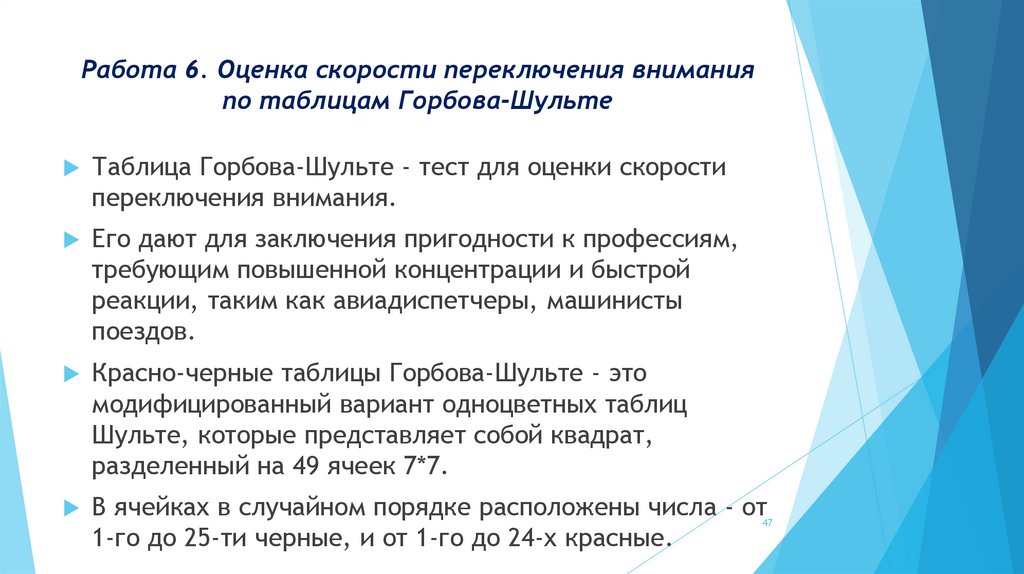 47. Работа 6. Оценка скорости переключения внимания по таблицам Горбова-Шульте