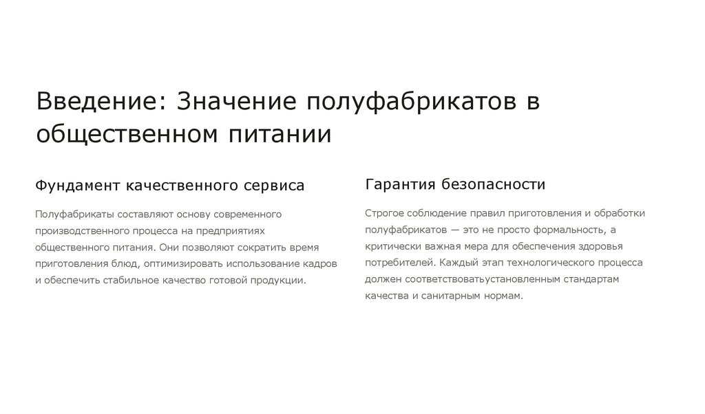 Введение: Значение полуфабрикатов вобщественном питании