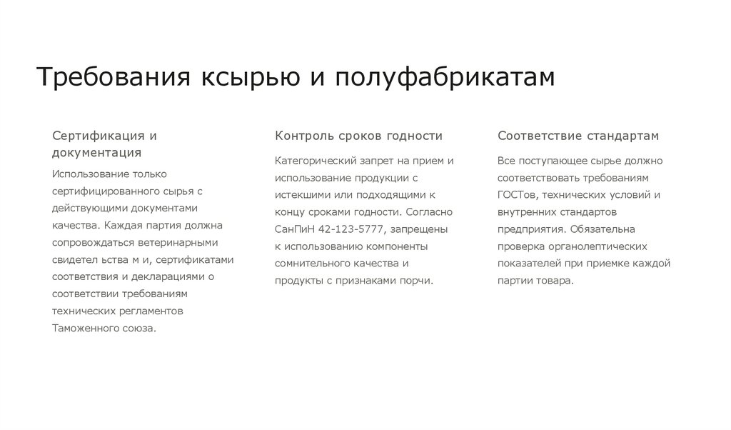 Требования ксырью и полуфабрикатамСертификация и