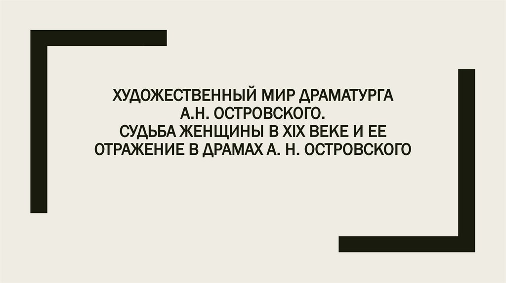 Художественный мир драматурга А.Н. Островского. Судьба женщины в XIX веке и ее отражение в драмах А. Н. Островского
