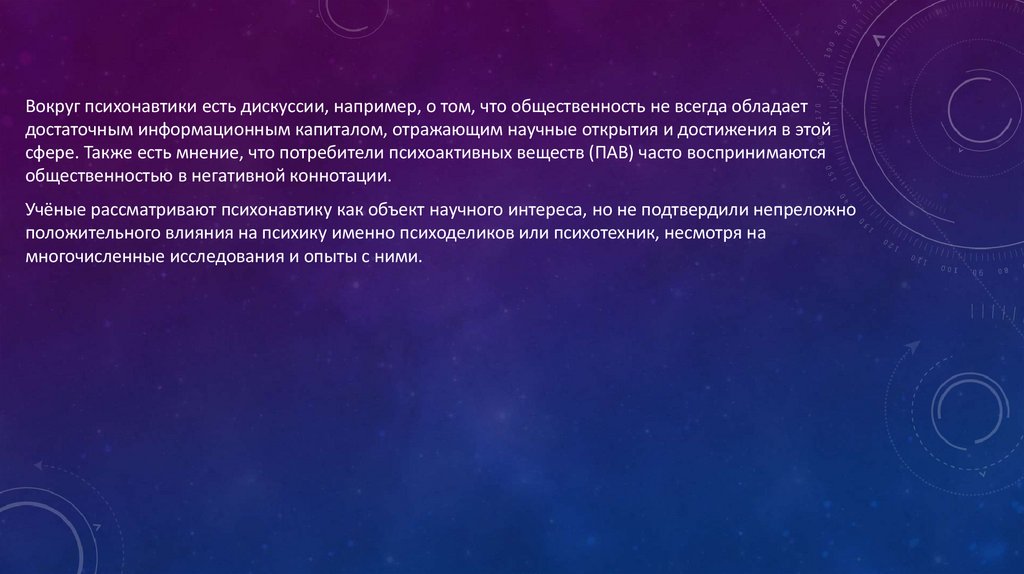 Вокруг психонавтики есть дискуссии, например, о том, что общественность не всегда обладаетдостаточным информационным капиталом, отражающим научные открытия и достижения в этой