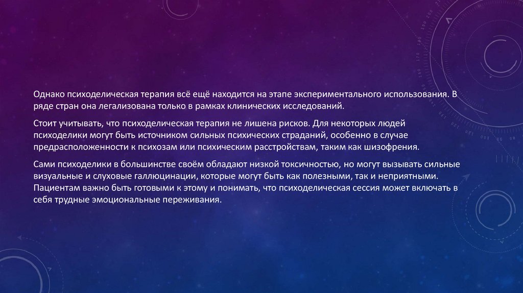Стоит учитывать, что психоделическая терапия не лишена рисков. Для некоторых людей