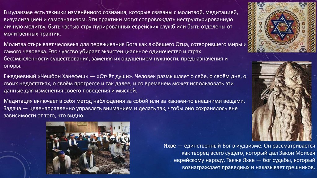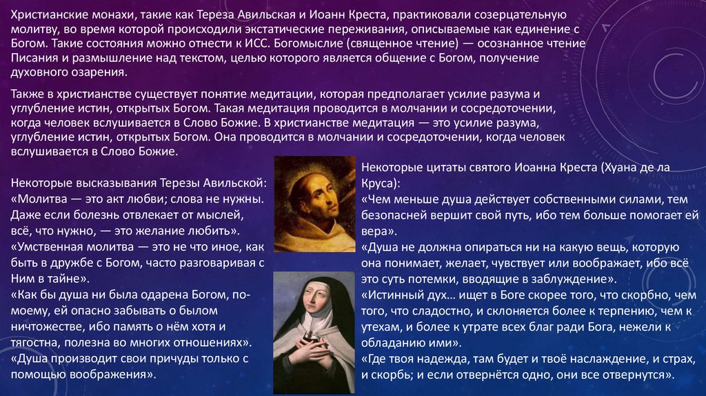 иудаизме и христианстве. Они включали в себя медитацию, медитацию движения,