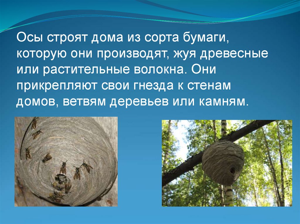 Осы строят дома из сорта бумаги,которую они производят, жуя древесные