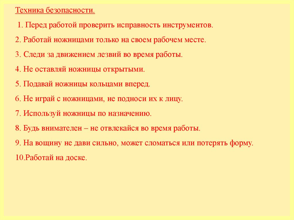 Техника безопасности.1. Перед работой проверить исправность инструментов.