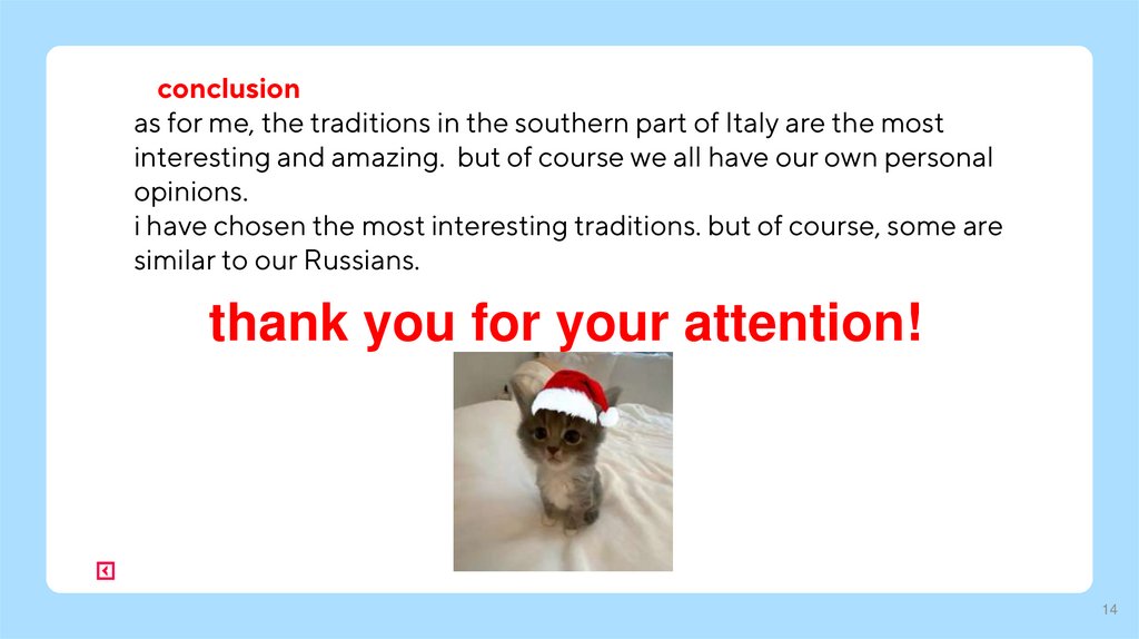 conclusionas for me, the traditions in the southern part of Italy are the most