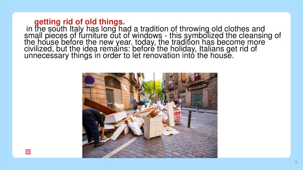 getting rid of old things.in the south Italy has long had a tradition of throwing old clothes and