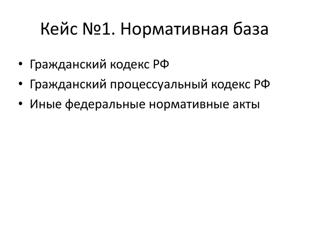 Кейс №1. Нормативная база• Гражданский кодекс РФ