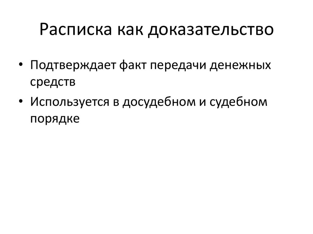 Расписка как доказательство• Подтверждает факт передачи денежных