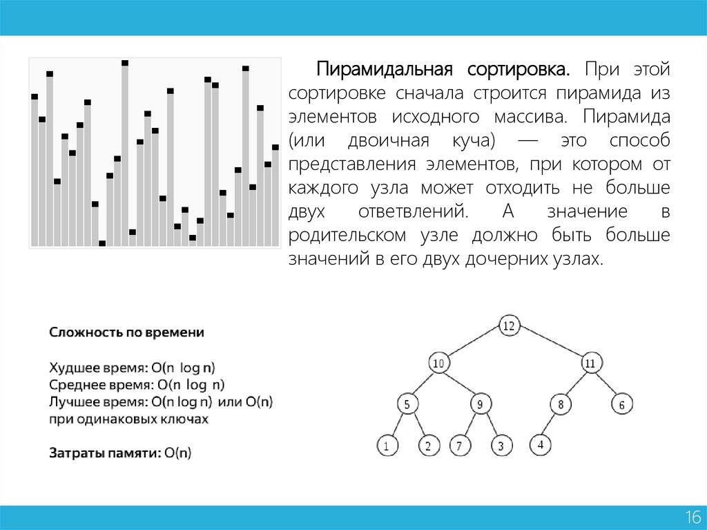 Пирамидальная сортировка. При этойсортировке сначала строится пирамида из