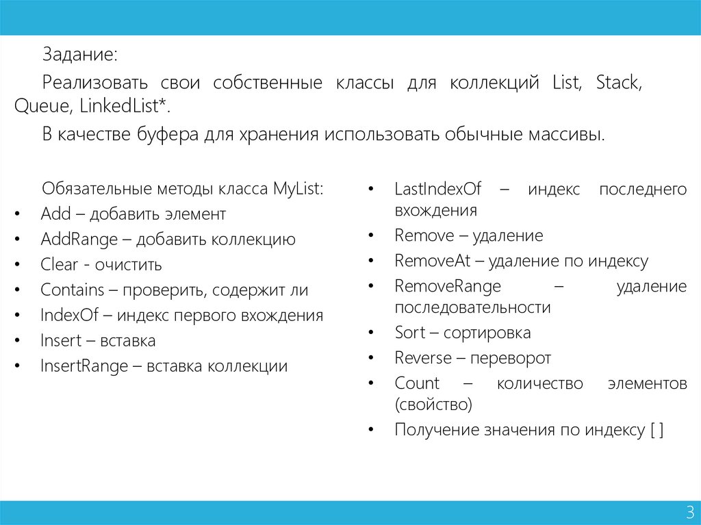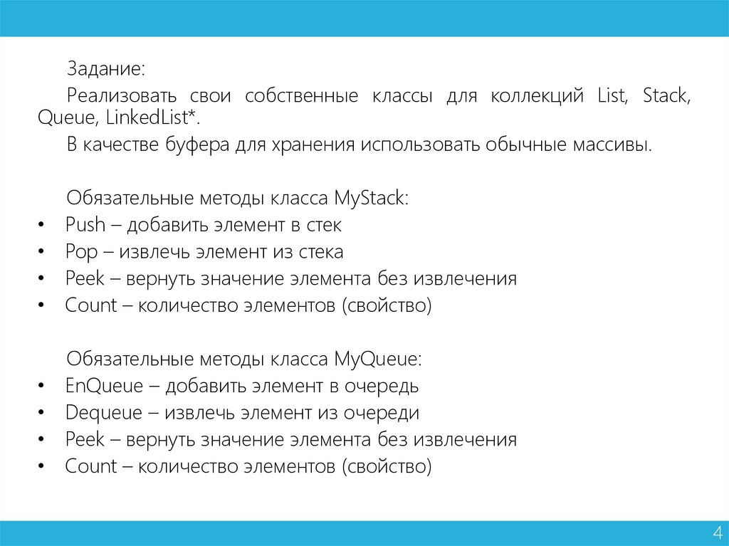 Задание:Реализовать свои собственные классы для коллекций List, Stack,