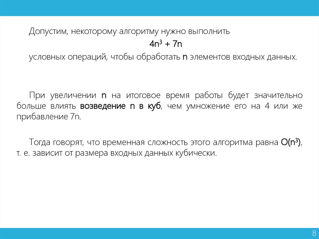 Тогда говорят, что временная сложность этого алгоритма равна О(n3),