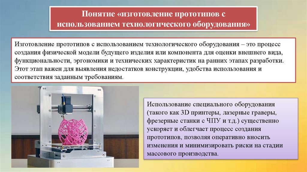 Цели процесса по изготовлению прототипов сиспользованием технологического оборудования