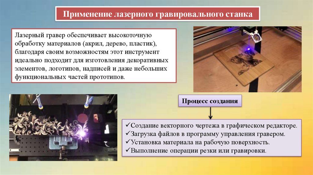 Применение лазерного гравировального станкаЛазерный гравер обеспечивает высокоточную