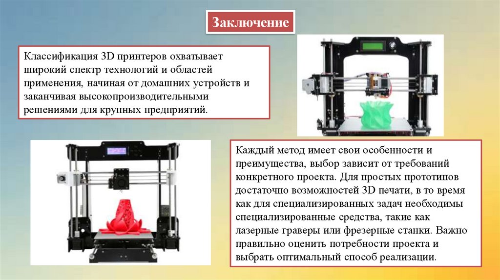 Классификация 3D принтеров по назначениюПрототипирование и разработка