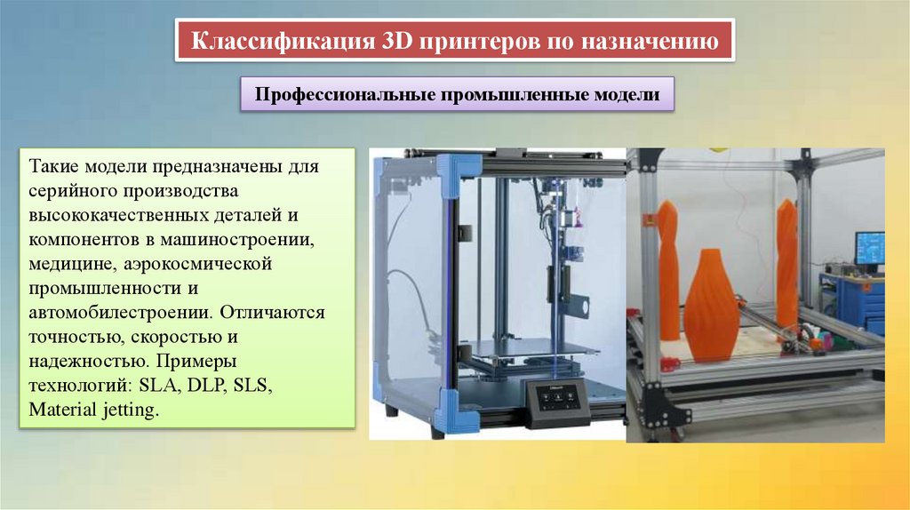 Классификация 3D принтеров по назначениюПрофессиональные промышленные модели
