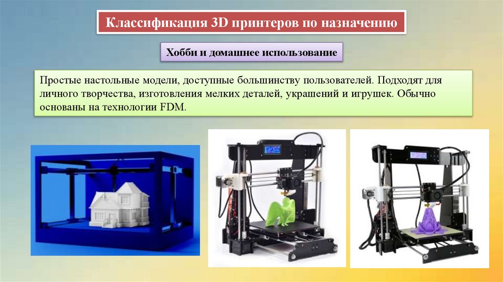Классификация 3D принтеров по назначениюХобби и домашнее использование