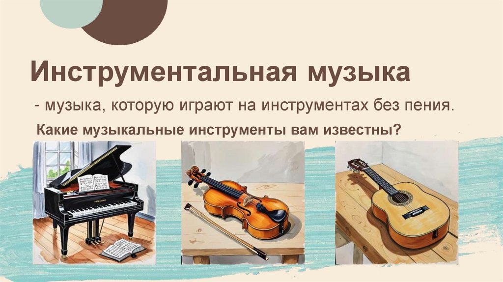 Инструментальная музыка- музыка, которую играют на инструментах без пения.