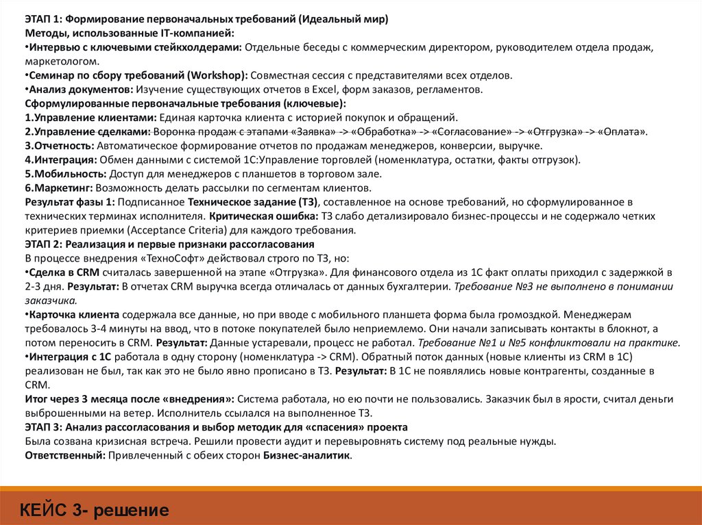 По Чек-листу решить кейс «Выявление и устранение рассогласования