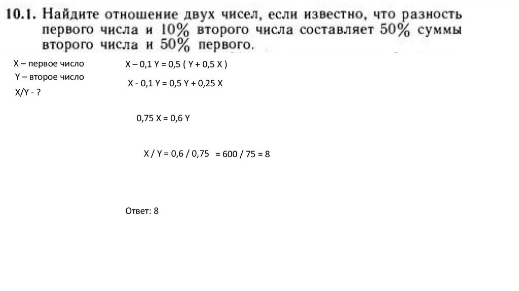 X / Y = 0,6 / 0,75 = 600 / 75 = 8