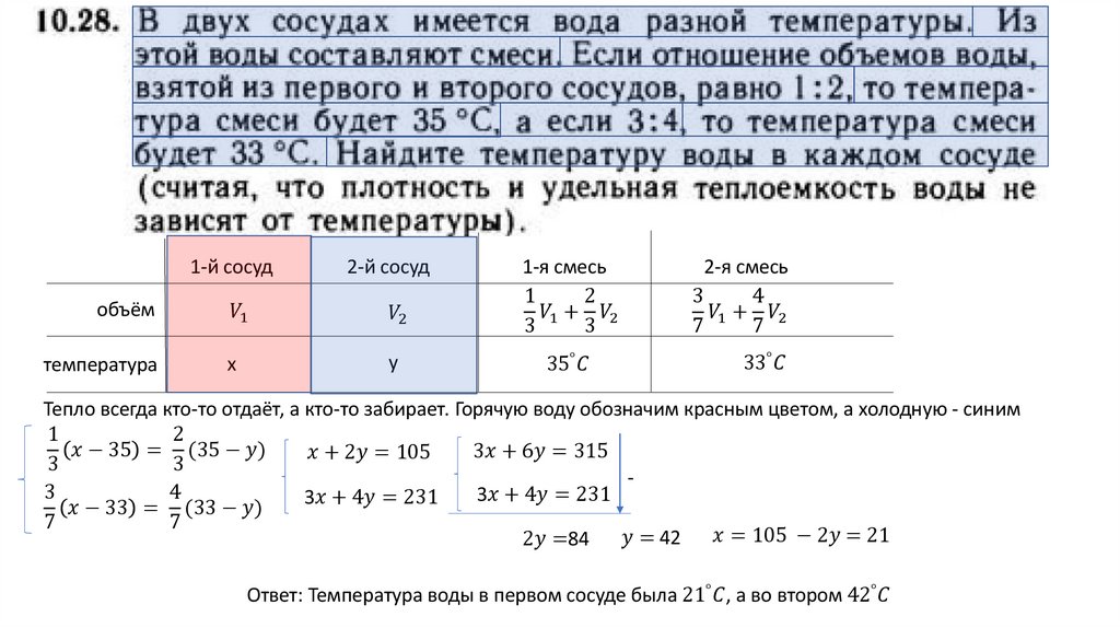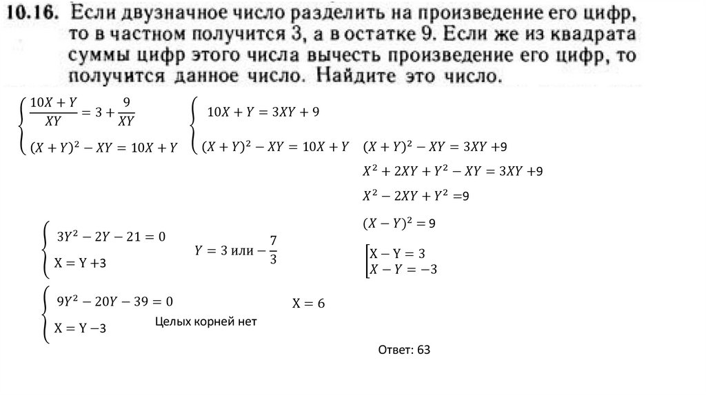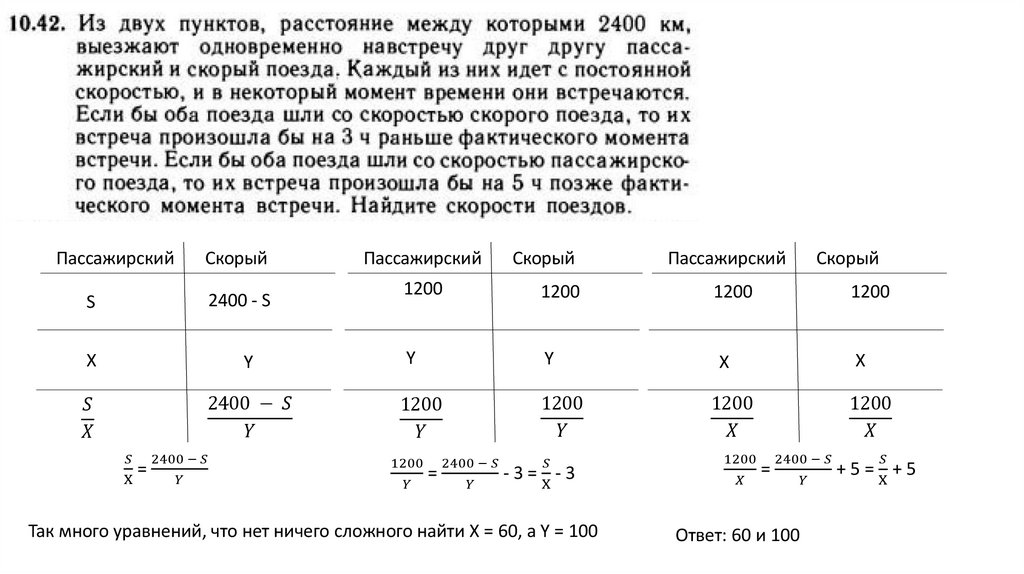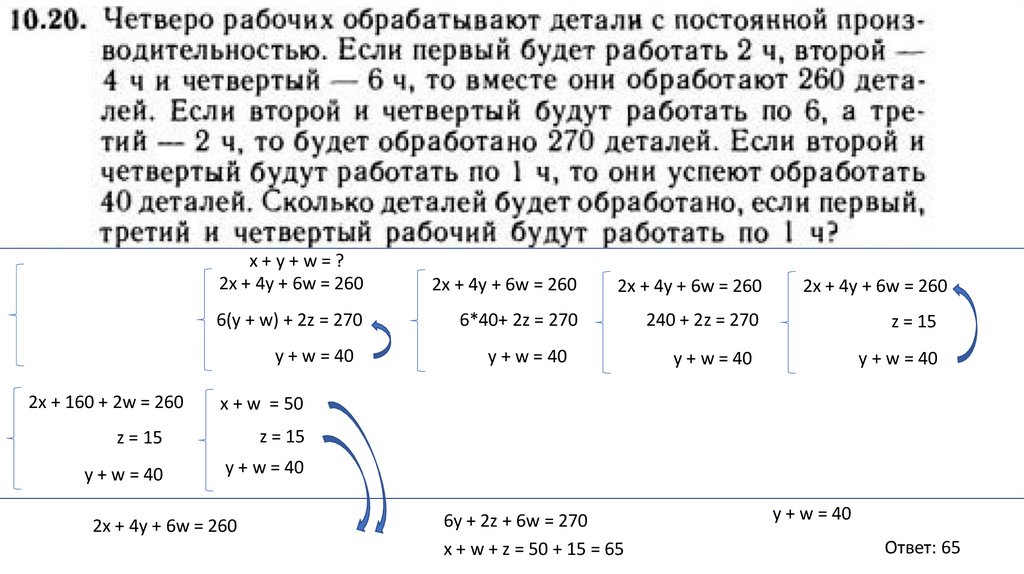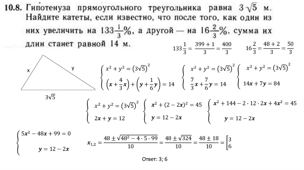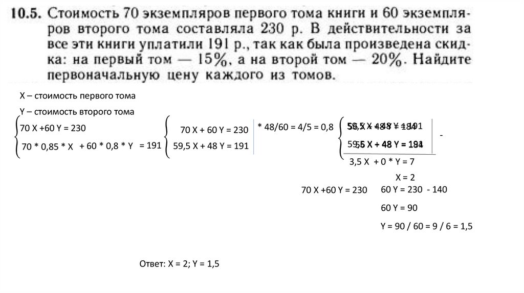 70 * 0,85 * X + 60 * 0,8 * Y = 191 59,5 X + 48 Y = 191